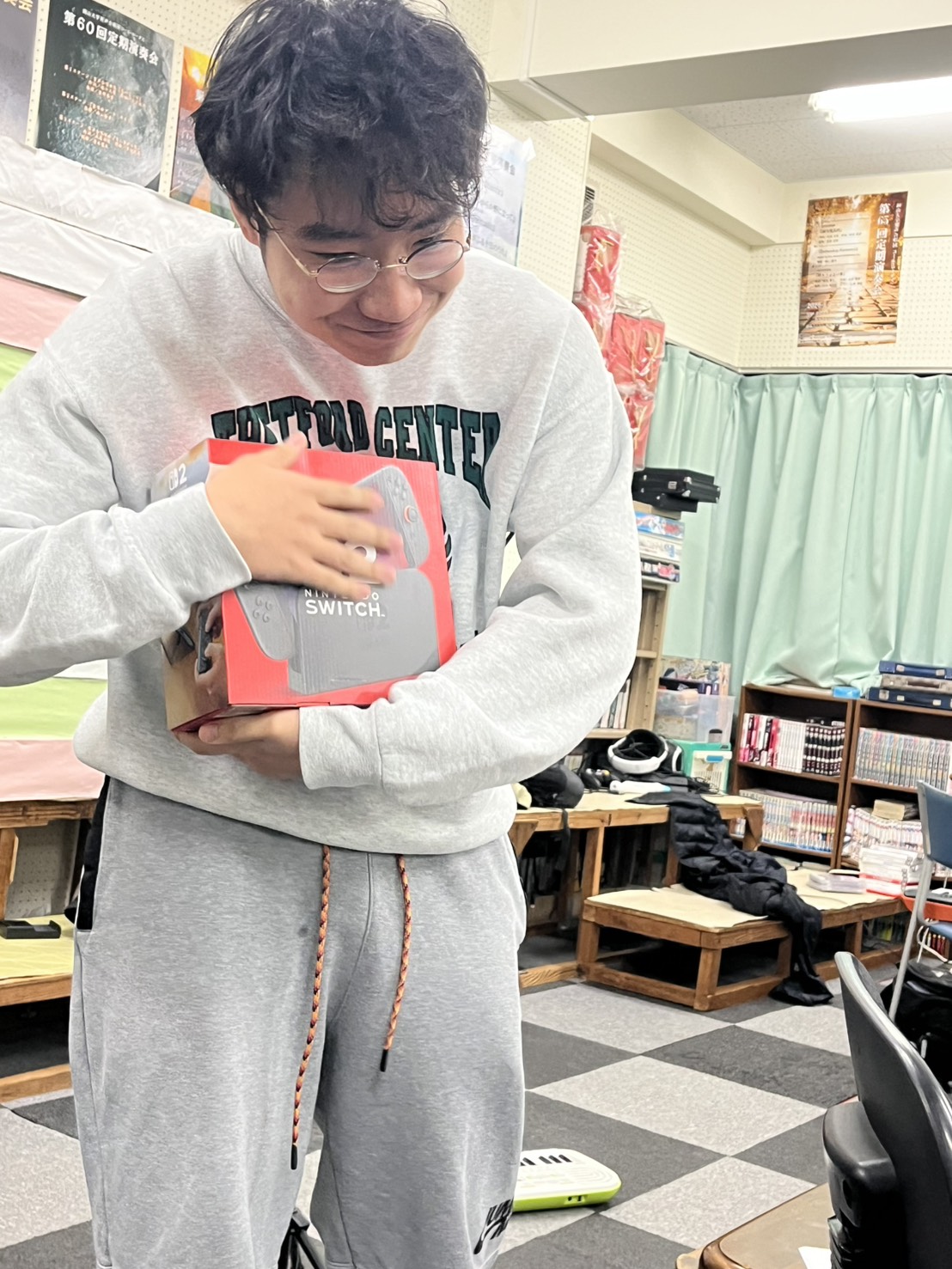 BOXに設置しています。Switch2は大事に使ってもらいたいですが、最も大事にするのは、新入生ということを忘れないように!