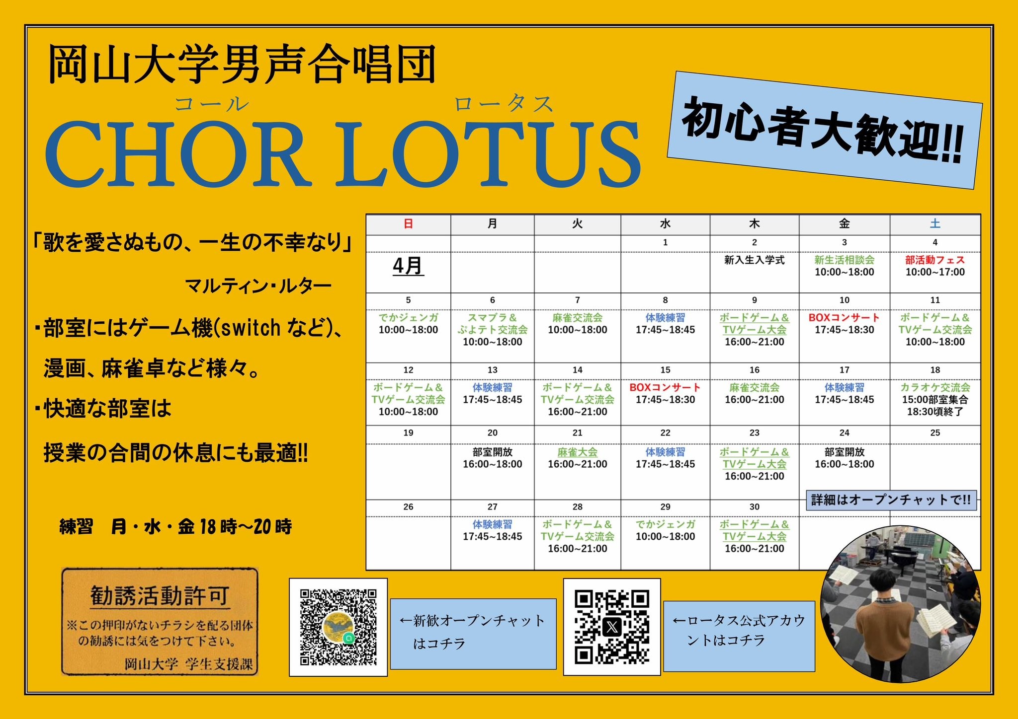新入生の諸君、ロータスに入って真に充実した学生生活を送りませんか!!
